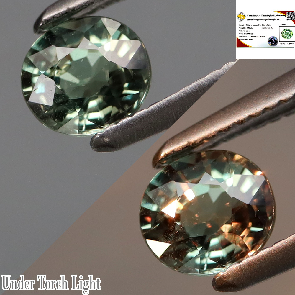 Click the button below to add the Russian Alexandrite with Cert 4.84mm x 4.42mm Oval NO Heat .56ct #AC0104 to your wish list.